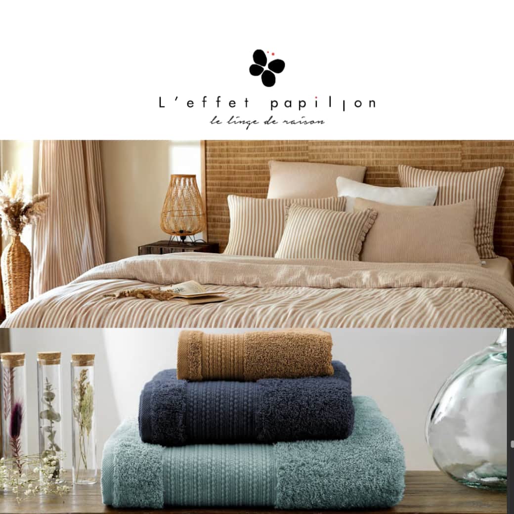 Pour offrir confort et douceur tout en respectant la planète, nous utilisons du linge de la marque L’Effet Papillon.