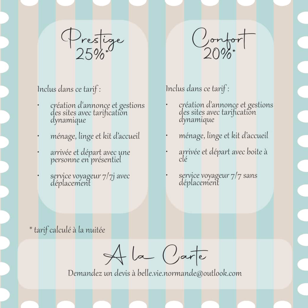 Belle Vie Normande vous propose trois formules simples et transparentes pour gérer votre location saisonnière : Prestige, Confort et A la Carte.
